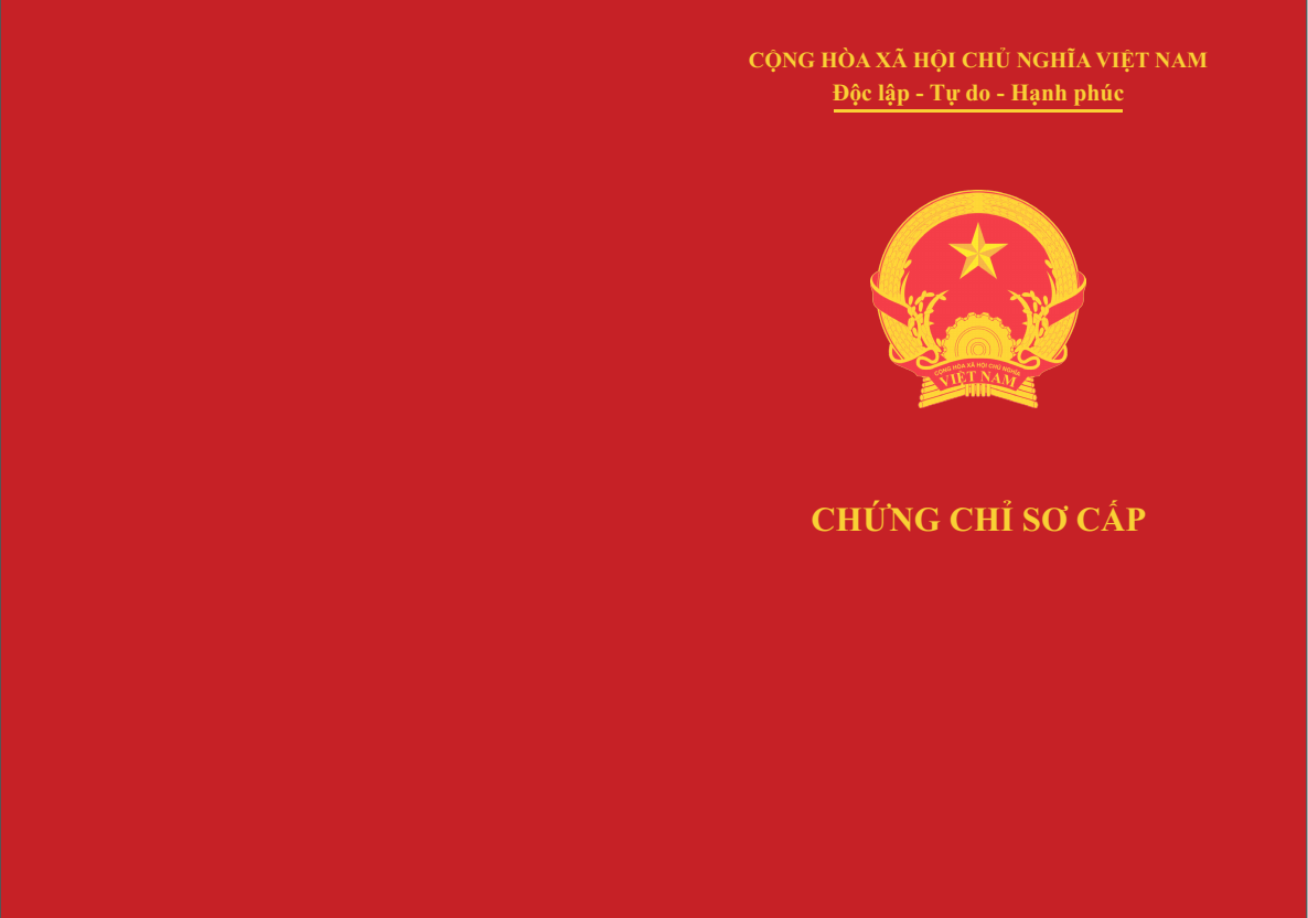 - Cấp chứng nhận của sở LĐTBXH, tổng cục dạy nghề. Bằng chứng nhận mang tiêu chuẩn Quốc gia Việt Nam.