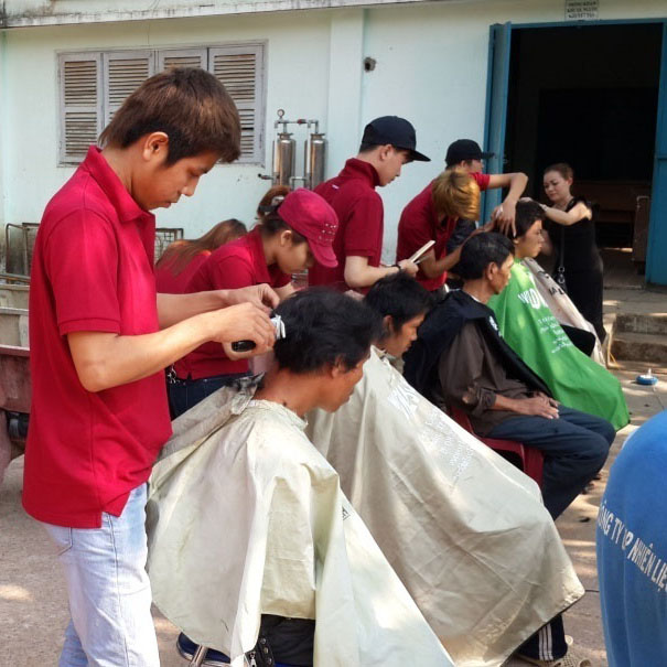 Bước thứ tư: Đoàn di chuyển đến khu du lịch Văn Thánh. Giảng viên hướng dẫn kiểu tóc số 1 cho đầm dạ hội.