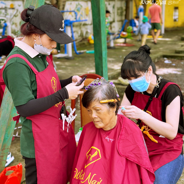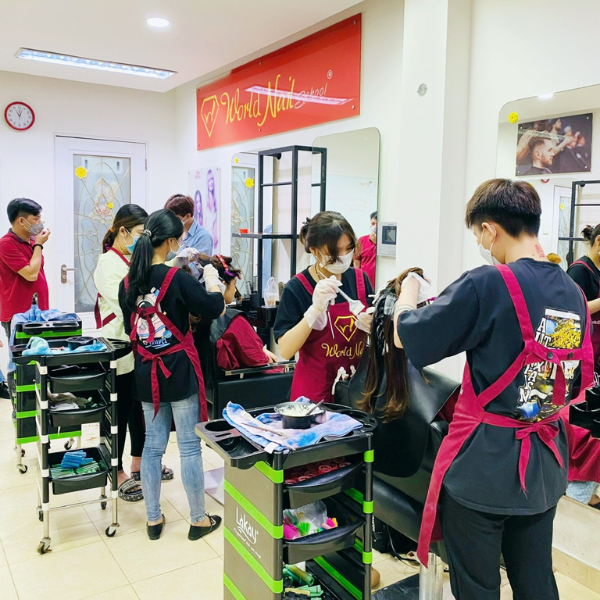 Giáo viên hướng dẫn thực hành trên tóc thật, đảm bảo học viên sẽ thuần thục các kỹ năng cắt tóc chuyên nghiệp.