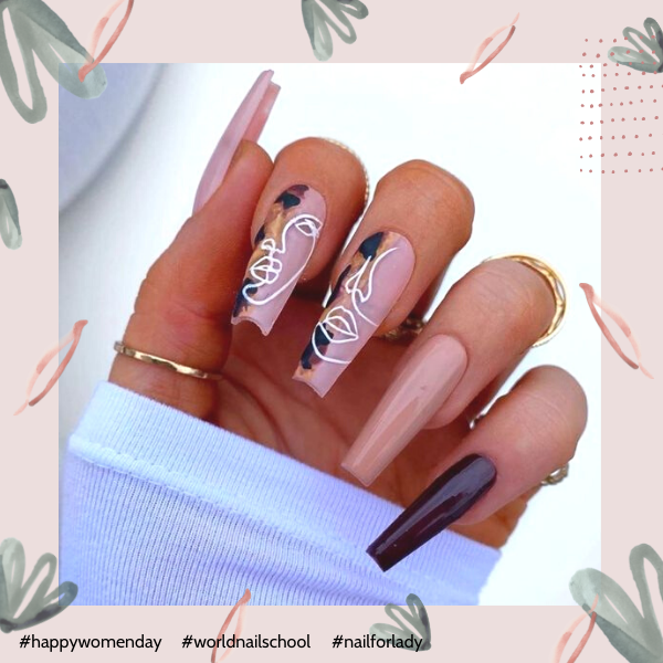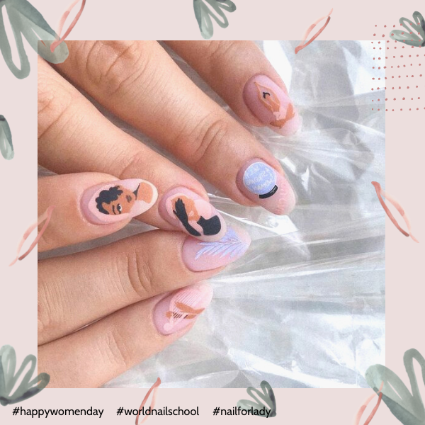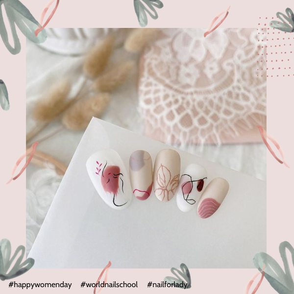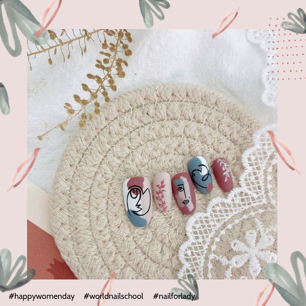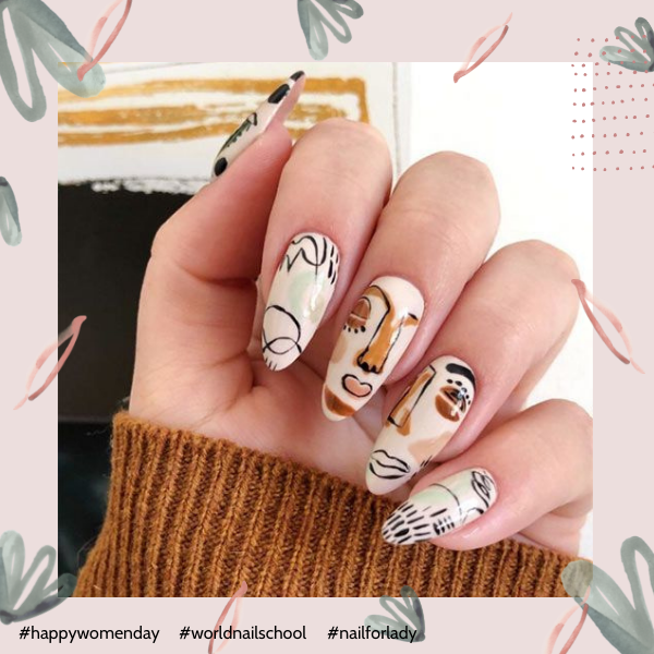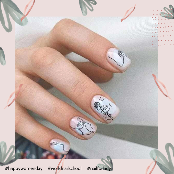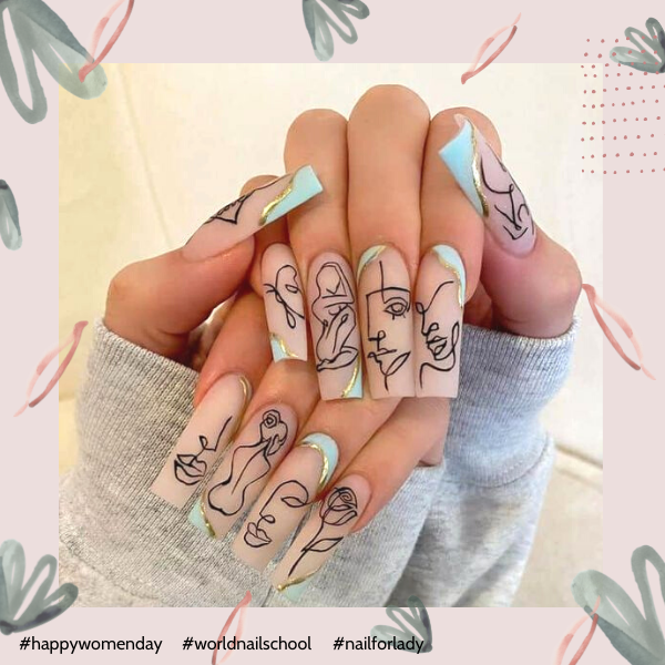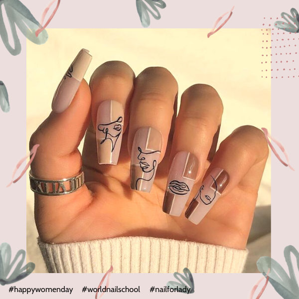 Những hình vẽ trừu tượng với hình ảnh người phụ nữ rất thích hợp là những Mẫu nail đẹp mừng ngày Phụ Nữ Việt Nam 2021 cho hội chị em. Nó sẽ rất thích hợp với người phụ nữ hiện đại với gu thời trang tinh tế.