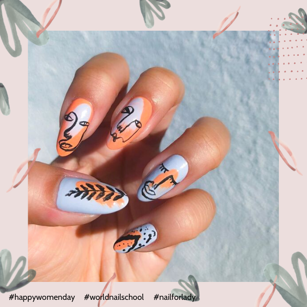 Lần này, World Nail School sẽ giới thiệu cho bạn những mẫu Nail theo phong cách Abstract (Trừu tượng) với hình ảnh người phụ nữ được cách điệu bằng những họa tiết mới lạ.